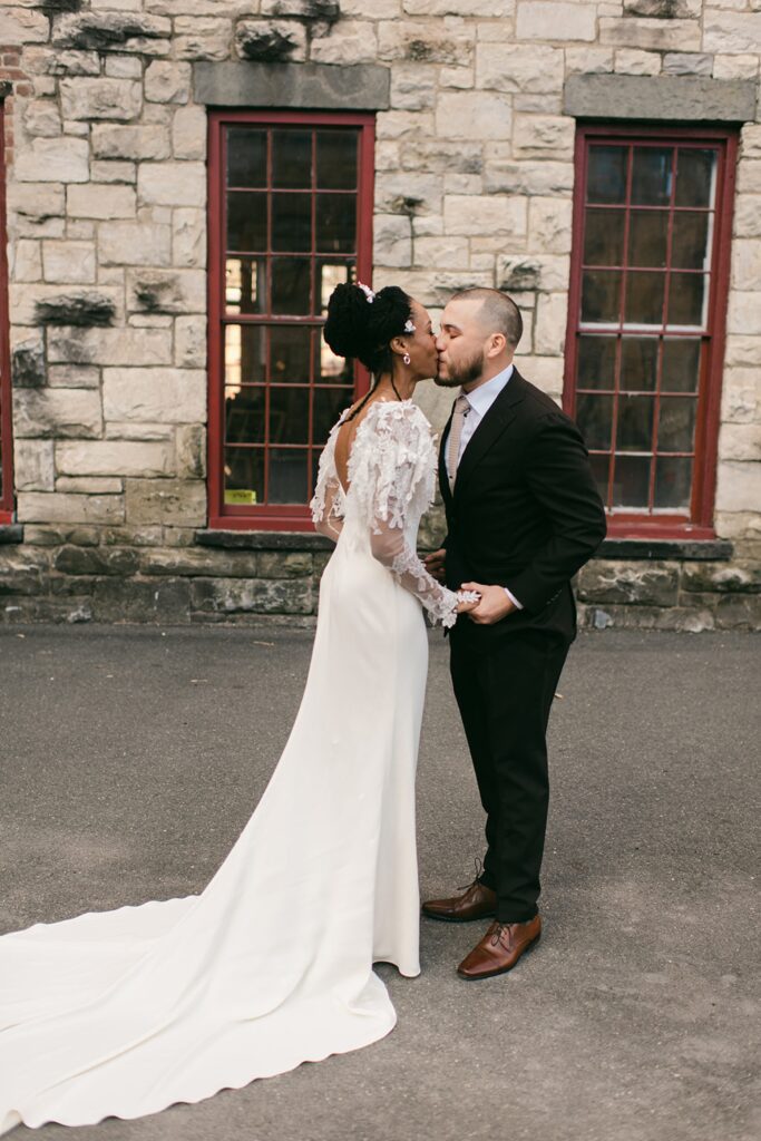 I was absolutely delighted to shoot Marissa and Mike’s wedding at Mass MoCA. It’s such a cool venue with an amazing variety of backdrops for photos. Their day started out in a nearby hotel where they got ready with friends and family. Then, they met one another for their first look in one of the museum courtyard and then they read their private vows to one another. I love that more couples are taking the opportunity to do private vows together instead of feeling pressured to recite them in front of everyone if that doesn’t feel natural. It’s so nice during wedding days to cultivate quiet moments where it’s just the two of you if that’s what you want.