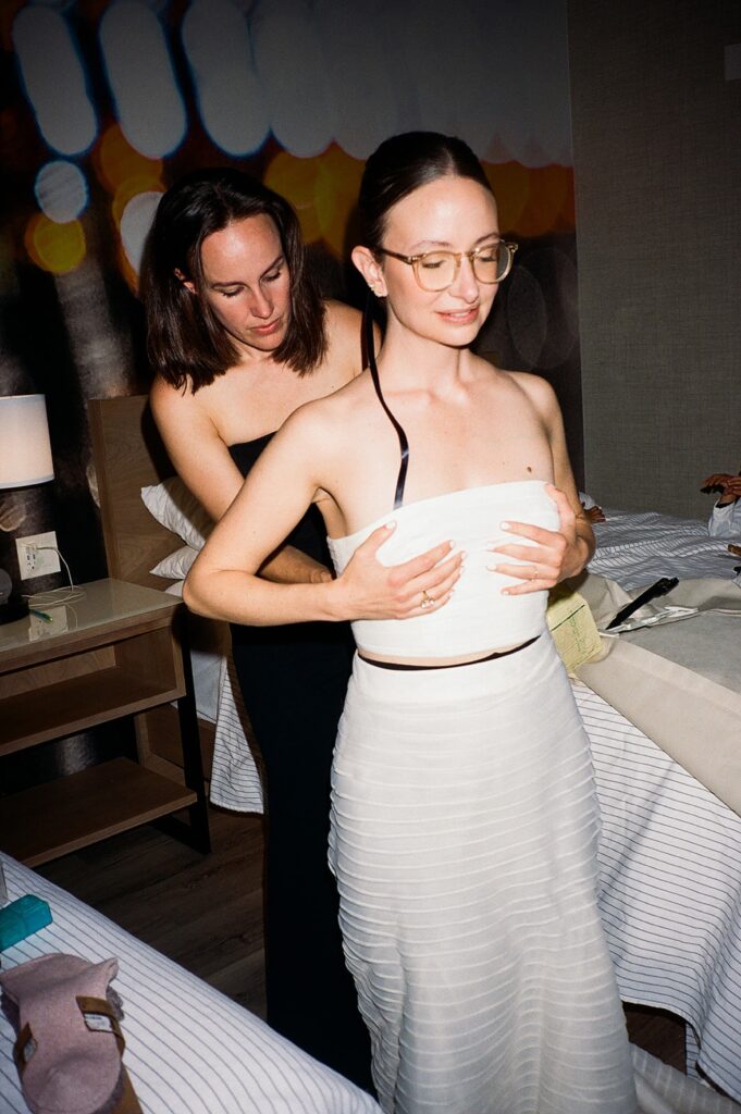 These two started out their wedding day at a hotel getting ready with their nearest and dearest before heading off to a local park for their first look. The park also happens to be where their wedding ceremony would be, and it had personal significance to them since they walk their dog Slim there often (be sure to check out the photos for some cameos of Slim, as well!). After some portraits, they hid away as they got ready for the wedding ceremony.